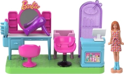 Das Set ist mit interaktiven Elementen ausgestattet, wie einem verstellbaren Stuhl und einem drehbaren Schild, das den Kindern erlaubt zu entscheiden, ob der Salon geöffnet oder geschlossen ist. Die Mini Barbie-Puppe lässt sich an der Taille biegen, sodass sie leicht auf den Stuhl oder zur Rezeption gesetzt werden kann. Ein zusätzlicher Vorteil ist die herzförmige Basis, die mit anderen Sets von Mini BarbieLand kompatibel ist.