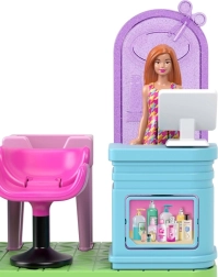 Beziehen Sie Kinder in kreatives Spiel mit dem Barbie Mini BarbieLand Friseursalon ein. Dieses Set ermöglicht es Kindern, Friseur, Kunde oder Rezeptionist in der erstaunlichen Welt von Barbie zu sein, wo jeder seine eigene Geschichte erzählen und erzählerische Fähigkeiten entwickeln kann.