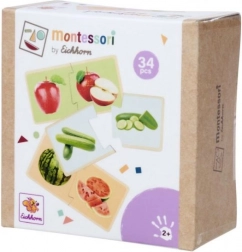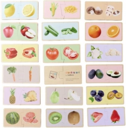 Das Montessori-Holzpuzzle mit dem Thema Obst und Gemüse lehrt Kinder, passende Teile korrekt zuzuordnen und die einzelnen Lebensmittel zu benennen. Realistische Illustrationen verbinden das Spiel mit dem Alltag und unterstützen natürliches Lernen durch Spielen.