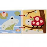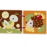 Dieses leichte, aber stabile Holzbuch ist ideal für die ersten Begegnungen mit Bildern. Dank des kompakten Formats liegt es gut in der Hand und die Seiten lassen sich auch mit kleinen Fingern leicht umblättern.