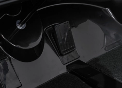 Das Interieur mit Polsterung aus Kunstleder mit Velours-Finish und zwei separaten Sitzen sorgt für Komfort, die dreistufige Sitzverstellung passt sich dem Wachstum der Kinder an. Das Multimedia-Panel mit UKW-Radio, MP3, USB, AUX und Bluetooth bietet Unterhaltung; Hupe und Sounds am Lenkrad sowie der SPORT-Modus mit Motorsound beim Gasgeben sind ebenfalls an Bord.