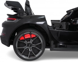 Dieses luxuriöse zweisitzige 911-GT3-Modell für Kinder bietet ein authentisches Sporterlebnis. Der starke 24V-10Ah-Akku versorgt vier 200-W-Motoren, wodurch das Fahrzeug sanft beschleunigt und auch Unebenheiten meistert. Eine Fernbedienung mit Not-Stopp-Taste gibt Eltern die volle Kontrolle, während LED-Front- und -Heckleuchten den realistischen Look unterstreichen.