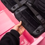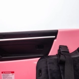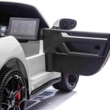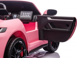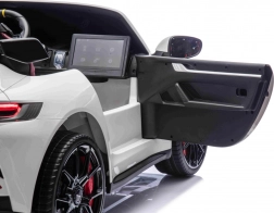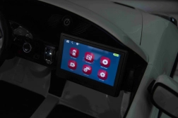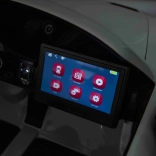 Das umfangreiche MP4-Audiopanel bietet FM-Radio, MP3, USB, Bluetooth und AUX. Lenkradtöne und Hupe sowie vorinstallierte Melodien sind ebenfalls an Bord. Der Doppelsitz aus Öko-Leder mit Velours verfügt über 3-stufige Einstellung und Sicherheitsgurte. Eltern schätzen die 2,4-GHz-Fernbedienung mit drei Geschwindigkeiten und Stopp-Funktion, die Batteriestandsanzeige und die hochwertige Verarbeitung.