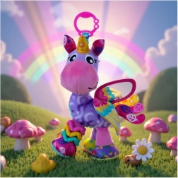 Suchen Sie ein Sinnes-Spielzeug, das Ihr Baby auf den ersten Blick und Berührung begeistert? Einhorn Stella kombiniert weiche Plüschmaterialien, knisternde Flügel, klingelnde Ringe und ein sicheres Spiegelchen am Flügel. Ein glänzendes Horn, ein silberner Flügel und ein mehrlagiger Schweif unterstützen neugieriges Entdecken und die Feinmotorik.