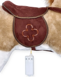 Im Bauch ist ein Batteriemodul sicher verborgen. Nach Einlegen von 2× AA (nicht im Lieferumfang enthalten) gibt das Pferdchen Geräusche von sich: