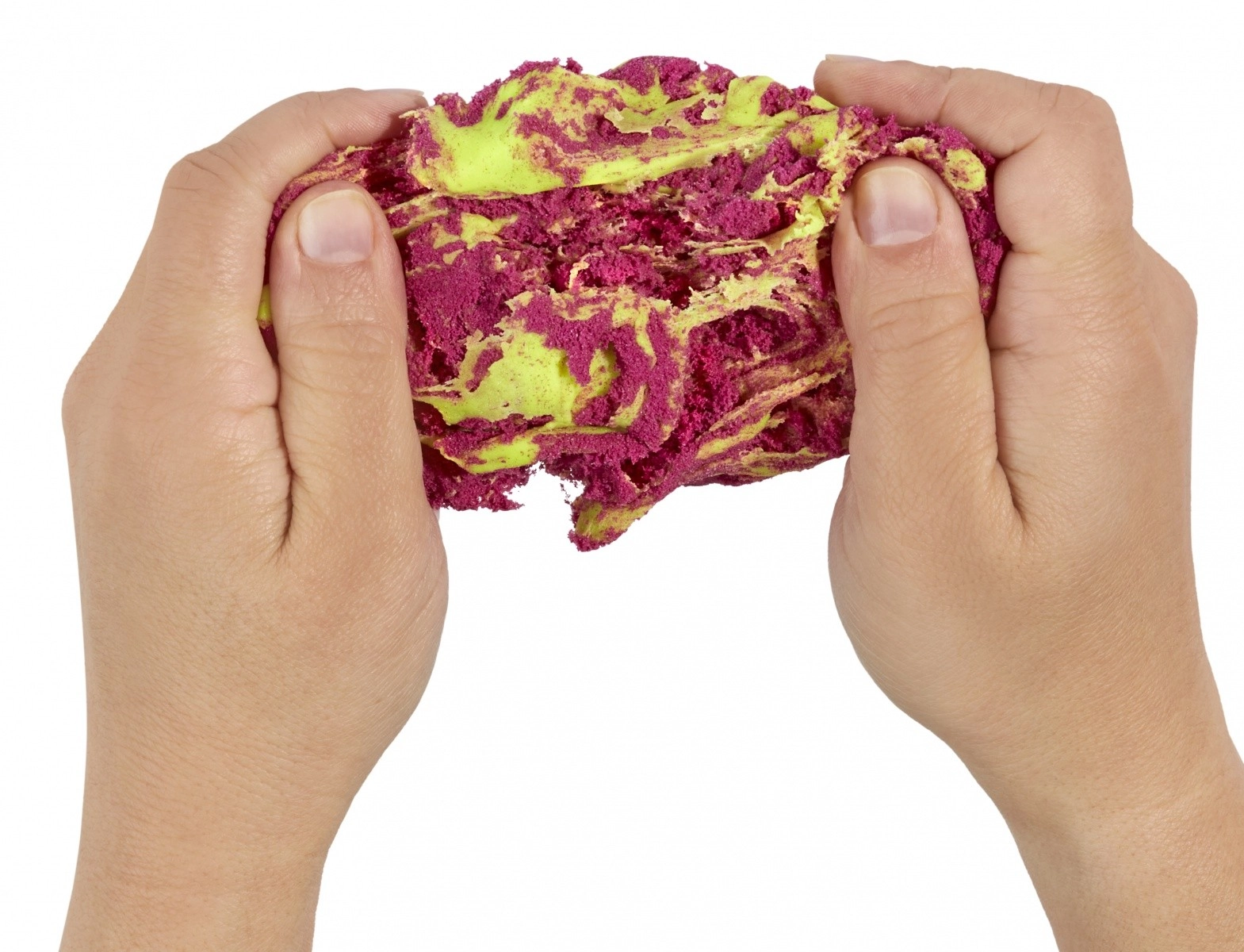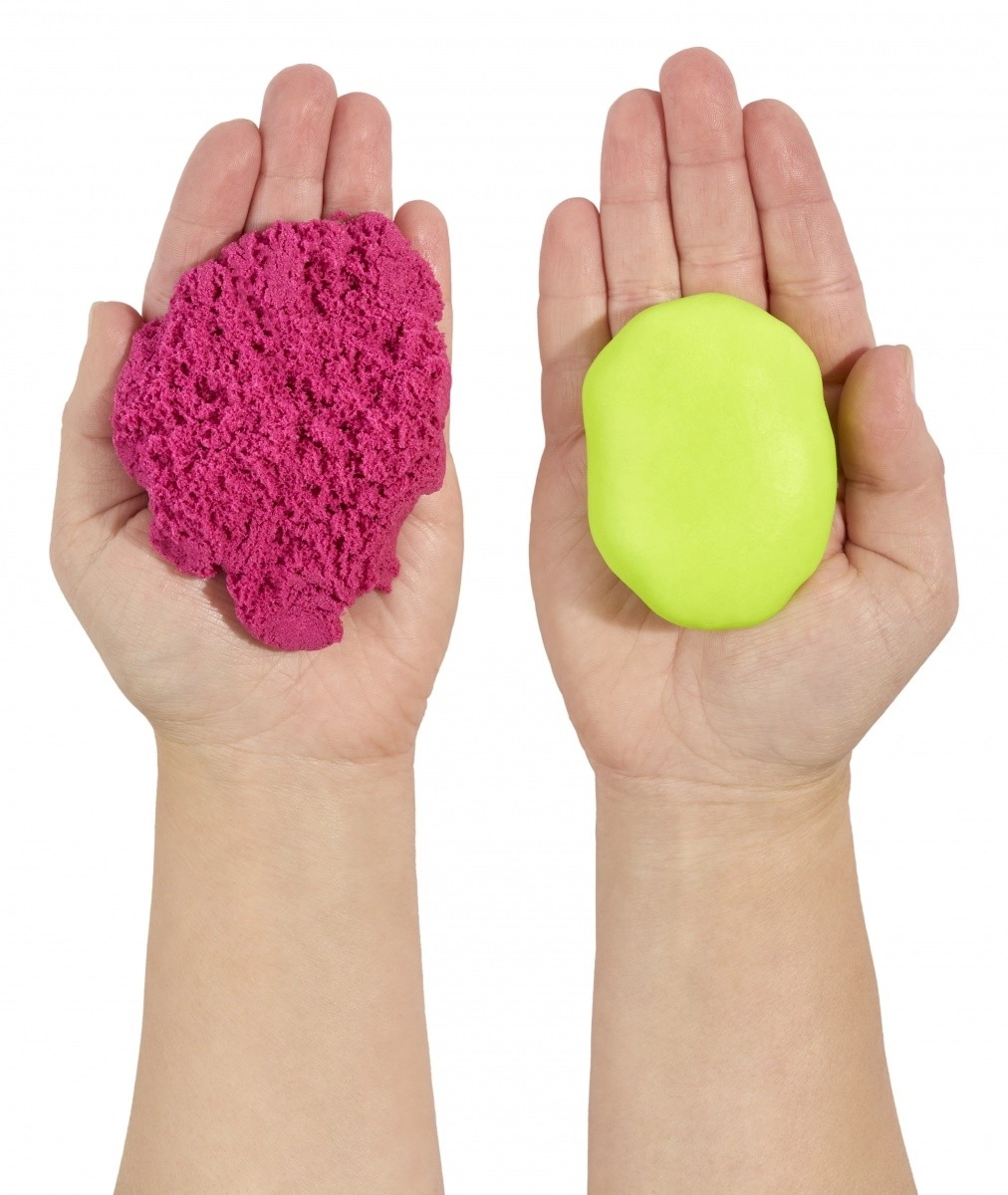 Dieses clevere Kreativset bietet zwei unterschiedliche Texturen für maximalen Spielspaß – eine feine, glatte Masse und strukturierten, formbaren Sand. Dank der speziellen Zusammensetzung trocknet die Masse nicht aus, sodass Kinder immer wieder spielen können. Limettengrün und Rosa laden zum Mischen von Formen, Mustern und fantasievollem Modellieren ein.