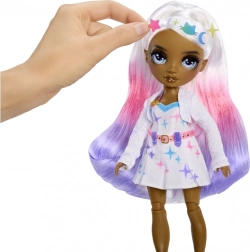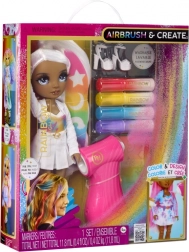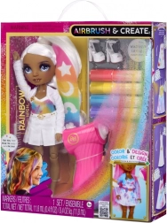 Die RAINBOW HIGH Air Brush Puppe ist als „leere Leinwand“ konzipiert, die Kinder nach ihren Vorstellungen gestalten können. Das Set enthält ein Airbrush-Handwerkzeug für Filzstifte, vier auswaschbare Farbstifte (Rot, Gelb, Blau, Lila), Schablonen für einfaches Dekorieren sowie ein komplettes weißes Outfit inklusive Schuhe. Die Farben lassen sich mit dem Zerstäuber auftragen oder direkt mit dem Stift für präzise Details – auf Haare, Kleid und Accessoires.