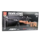 Das detailreich gestaltete AWM-Modell ahmt das ikonische Scharfschützengewehr originalgetreu nach, inklusive Zielfernrohr, ergonomischem Griff und stabilem Zweibein. Dank des integrierten Mechanismus können Sie nach Laden und Repetieren ein spezielles Geschoss aus Bausteinen abfeuern, was sowohl die Authentizität als auch die spielerische Interaktivität erhöht.
