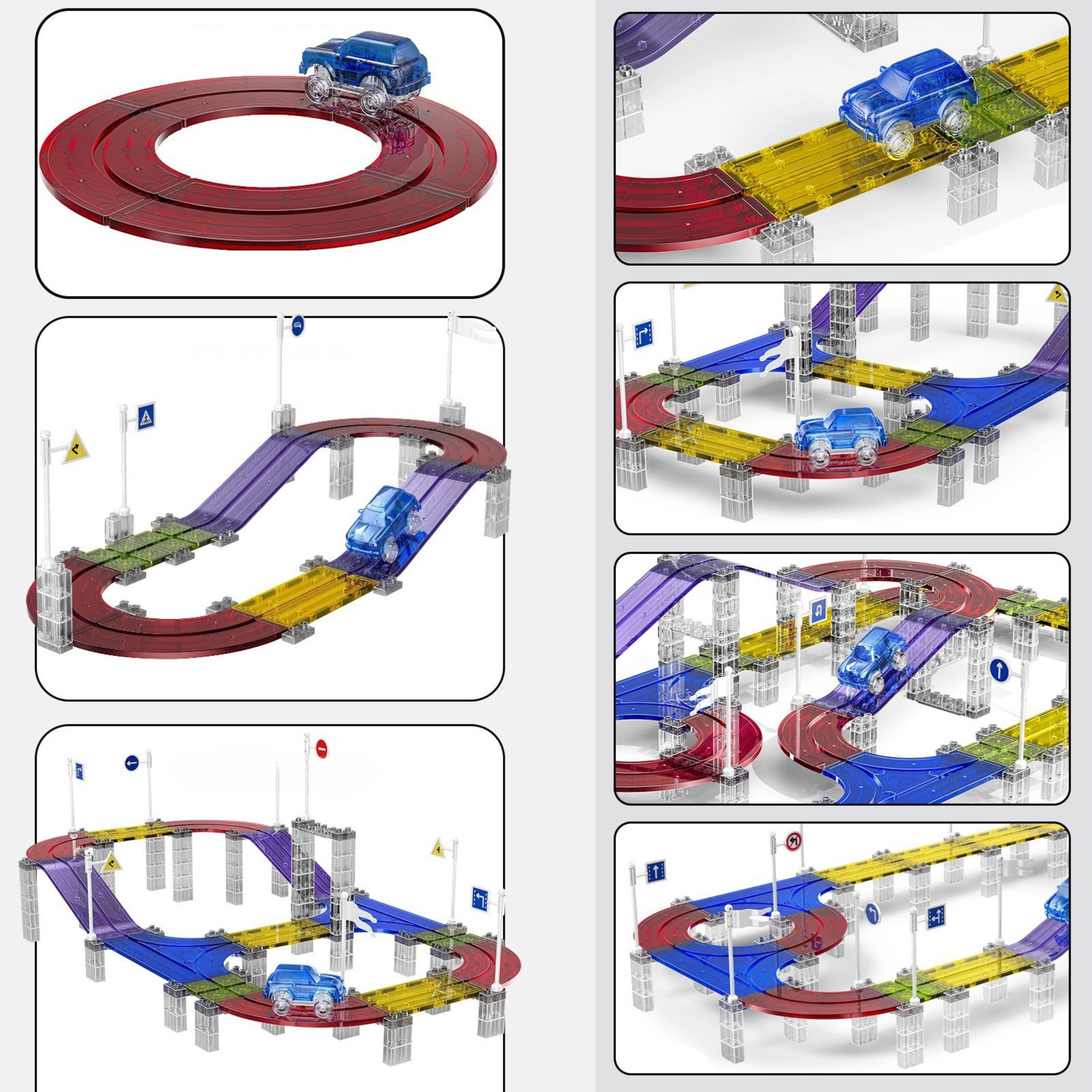 Entdecken Sie ein Konstruktionsset, das mit der Fantasie Ihrer Kinder mitwächst. Die magnetischen Elemente haften schnell und fest aneinander und ermöglichen das Bauen von Brücken, Rampen und scharfen Kurven ganz ohne Werkzeug. Dank des LED-beleuchteten Autos ist die Fahrt auch bei ausgeschaltetem Licht attraktiv.