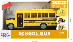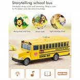 Der interaktive Schulbus WOOPIE im Maßstab 1:20 begeistert kleine Fahrzeug- und ÖPNV-Fans. Realistische Details, Frontlichter und Fahrgeräusche ziehen Kinder ins Spiel, während die öffnenden Türen kreative Szenen und Rollenspiele unterstützen. Dank des Schwungrad- (Reibungs-)antriebs genügt ein Anschubsen und der Bus fährt von selbst mehrere Meter.