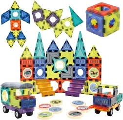 Dieses kreative Set magnetischer Bausteine ist ideal für Kinder ab 3 Jahren. Dank der starken Magnete entstehen stabile Konstruktionen – von einfachen flachen Modellen bis hin zu ausgefeilten 3D-Bauten. Transparente, farbige Teile laden zum Entdecken von Formen und Farben ein und unterstützen das spielerische Lernen.