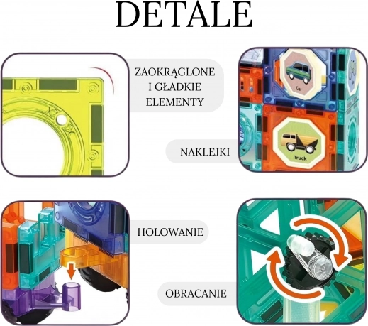 WOOPIE magnetische 3D-Bausteine, 71 Teile. Bauen Sie Schlösser und Fahrzeuge, starke Magnete, farbige Teile und Aufkleber. Fördert Kreativität und Logik ab 3 Jahren.