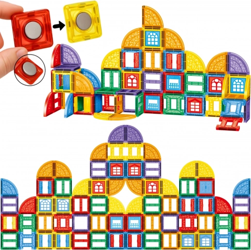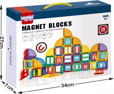 Magnetische 3D-Bausteine WOOPIE, Lernset Schloss 100 Stk. Starke Magnete, fördert Kreativität und Logik, geeignet ab 3 Jahren. Flache und 3D-Konstruktionen bauen.