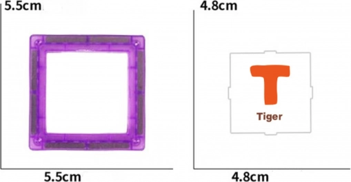 - 8 blaue Quadrate, 7 rote Quadrate, 9 graue Quadrate, 7 violette Quadrate, 9 grüne Quadrate, 30 pädagogische Buchstabenkarten