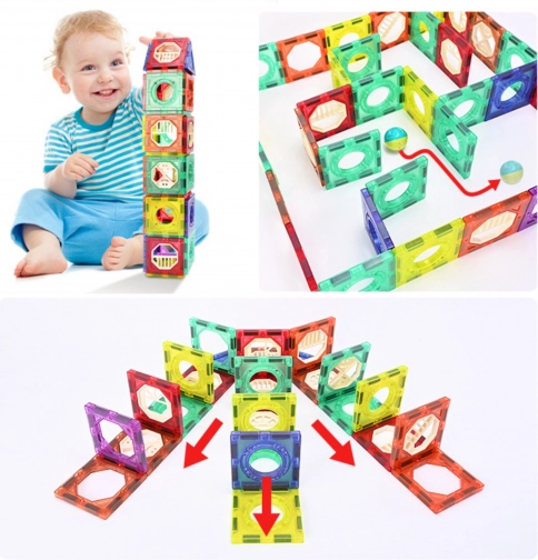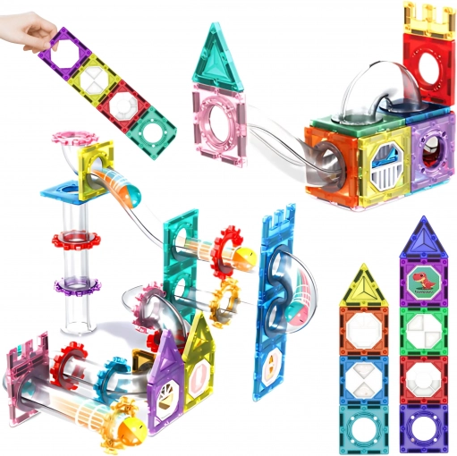 Dieses Lernbaukasten-Set bietet unzählige Konstruktionsmöglichkeiten – von einfachen Bahnen bis hin zu komplexen und stabilen Bauten. Dank der sicheren magnetischen Verbindungen lassen sich die Teile leicht verbinden und behalten ihre Form, sodass Kinder eine flüssige Fahrt der Kugeln sowie Experimente mit Geschwindigkeit und Richtung genießen können.
