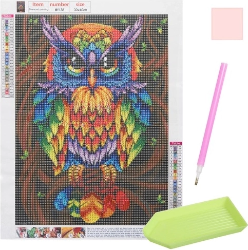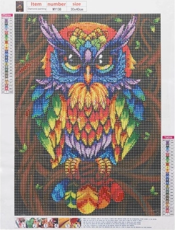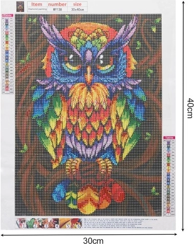 - Spezifikation – Muster: Eule; Leinwandgröße: 30x40 cm; Bildgröße: 25x35 cm; Leinwand beschichtet mit Klebeschicht: Ja; Im Set enthalten: Bunte Diamanten, Applikator, trockener Kleber, Behälter; Gewicht: 0,114 kg;
