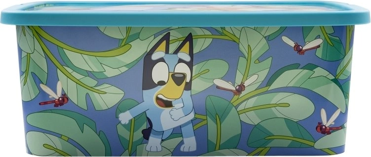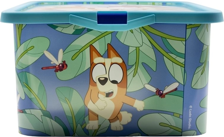 Praktische Kunststoff-Aufbewahrungsbox mit BLUEY-Motiv bietet multifunktionale Nutzung für Spielzeug, Bausteine und Kleinigkeiten. Sie ist verschließbar mit abnehmbarem Deckel und passt dank der kompakten Maße leicht in Regale und Kinderzimmer.