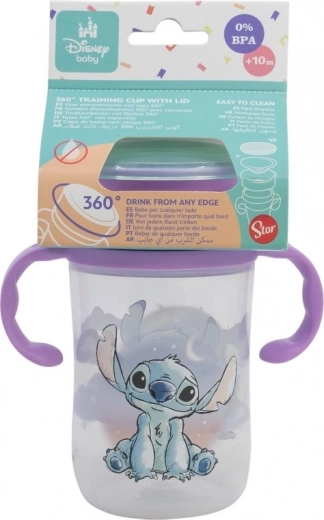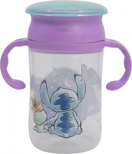 Kinder-Trainingsbecher STITCH 395 ml mit 360°-Trinkrand, kippsicheren Henkeln, BPA-frei und leicht zu reinigen. Ideal zum Lernen des Trinkens aus dem normalen Becher.