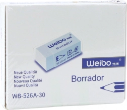Der universelle WEIBO-Radiergummi aus weichem, synthetischem Material (latexfrei) sorgt für sauberes und präzises Radieren mit minimaler Krümelbildung. Geeignet für das tägliche Schreiben, technische Zeichnungen und detailreiche Skizzen. Die klassische weiße Farbe und die einfache Form passen perfekt zu jedem Schreibset.