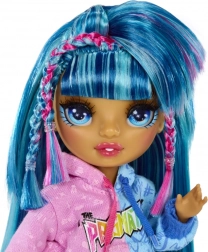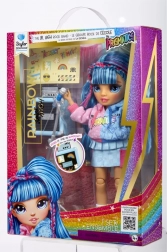 Die Puppe Skyler Bradshaw aus der Rainbow High Jr. High Kollektion erstrahlt im ikonischen Blau und ist bereit für die Bühne. Dank des voll beweglichen Körpers lässt sie sich leicht in effektvolle Posen bringen, und mit Mikrofon und Mini-Verstärker startest du eine richtig große Show. Das detailreiche Outfit, lange blaue Haare und thematische Accessoires machen diese Puppe zu einem tollen Stück zum Spielen und Ausstellen.