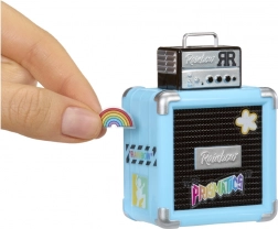 Im Set findest du alles für sofortigen Musikspaß – ein zweiteiliges Mode-Set, stylische Schuhe, Mikrofon mit Ständer, Mini-Verstärker, einen Stickerbogen zum Verzieren und einen Kamm zum Frisieren. Kombiniere Accessoires, erfinde Geschichten und sammle weitere Bandmitglieder, damit deine Bühne komplett wird.