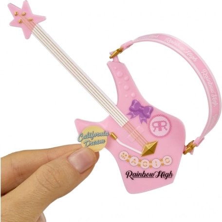 Enthalten ist eine rosa Bassgitarre mit Sternen-Design, mit der Bella jedes Bühnenabenteuer rockt.