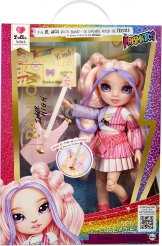 Die Rainbow High Junior Bella bringt den ikonischen Rosé-Look und eine musikalische Note mit. Dank der Gelenke lässt sie sich mühelos für epische Bühnenposen und Alltagsszenen positionieren. Bella ist bereit zu glänzen – mit Bassgitarre und Accessoires, die ihren individuellen Stil unterstreichen.