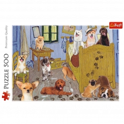 Genießen Sie kreative Entspannung mit dem Trefl-Puzzle, das eine witzige Interpretation des ikonischen Zimmers von VAN GOGH in Arles im Hunde-Stil bietet. 500 präzise gestanzte Teile garantieren Spaß für die ganze Familie und ein schönes Endmotiv mit den Maßen 48 × 34 cm. Die spezielle kalandrierte Oberfläche reduziert Reflexionen und verbessert die Lesbarkeit des Motivs beim Puzzeln.