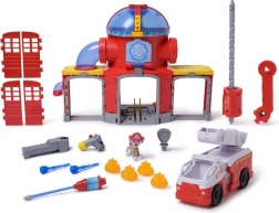 Mehrstöckige Feuerwache mit Garagen, beweglichen Elementen und Marshalls Feuerwehrauto fördert fantasievolles Teamspiel.