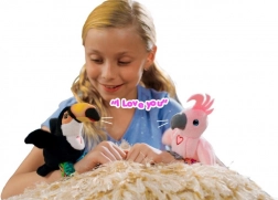 Entdecke den Zauber eines interaktiven Spielzeugs, das an deiner Hand lebendig wird. Der Steppos Happy Yappers Tukan kann auf Knopfdruck wiederholen, was du sagst, spielt eine fröhliche Vogelmelodie und schlägt dabei mit den Flügeln. Ein lustiger Begleiter für Kinder, der Kommunikation und Fantasie fördert.