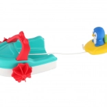 Dieses niedliche Boot mit Pinguin macht jedes Bad zum Abenteuer. Einfach aufziehen, und dank der seitlichen Schaufeln fährt es selbstständig über die Wasseroberfläche. Glatte Formen und robuster Kunststoff sorgen für sicheres Spielen, das zugleich die Motorik und Fantasie fördert.
