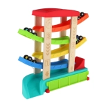 Einfach eines der 4 mitgelieferten Autos am Start platzieren und beobachten, wie es dank der Schwerkraft nach und nach die einzelnen Ebenen durchfährt und im Ziel ankommt. Die Abmessungen 33 × 32 × 10 cm bieten die ideale Größe für Spiel auf Tisch oder Boden; abgerundete Kanten und eine stabile Basis sorgen für Sicherheit.
