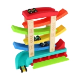 Diese Kaskaden-Rennbahn kombiniert stabile Holzsäulen und robuste Kunststofframpen in leuchtenden Farben, die die kindliche Neugier und visuelle Wahrnehmung anregen. Kinder entwickeln Feinmotorik, Hand-Auge-Koordination und das Verständnis von Ursache und Wirkung, während sie die Fahrt der Autos verfolgen.