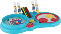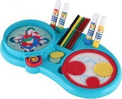 Dieses kreative Zeichenset vereint die beliebten Techniken Spirograf und Spin‑Art in einem übersichtlichen Arbeitsplatz. Mit den Zahnrädern zeichnen Sie präzise Spiralen und Mandalas, während die Drehscheibe einzigartige Spritzbilder mit spielerischen Farbeffekten ermöglicht. Organisierte Fächer halten alle Utensilien an ihrem Platz, damit sich Kinder ganz aufs Gestalten konzentrieren können.