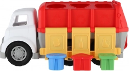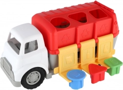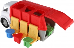 Dieses farbenfrohe Müllfahrzeug begeistert kleine Fans von Aufräumen und Recycling. Der obere Teil dient als Formen-Steckspiel mit Öffnungen, in die Kinder die passenden Teile einsetzen und so Formen und Farben erkennen lernen. Seitliche öffnende Türchen und abnehmbare Behälter ermöglichen eine spielerische Nachahmung der Müllabfuhr.