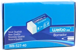 Der praktische weiße Radiergummi WEIBO ist ideal für Schule und Büro. Aus weichem synthetischem Material gefertigt, entfernt er Graphit effektiv vom Papier ohne zu verschmieren und ohne die Oberfläche zu beschädigen. Er ist latexfrei, hat abgerundete Kanten und kompakte Maße von 3,5 × 1,5 × 1 cm für den bequemen täglichen Gebrauch.