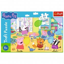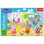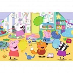 Entdecken Sie die Freude am Puzzeln für die Kleinsten mit der beliebten Heldin Peppa Pig. Extragroße Teile erleichtern die Handhabung und fördern die Entwicklung der Feinmotorik, Geduld sowie das Erfassen von Formen und Farben. Dank des speziellen kalandrierten Papiers mit reduzierten Reflexionen ist das Puzzeln angenehmer und die Augen ermüden weniger.