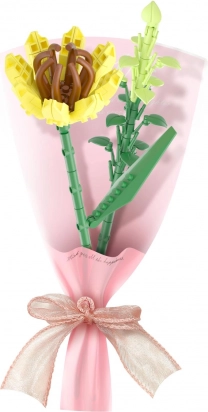 Jedes Mini-Bouquet ist in einer stilvollen „Papier“-Banderole aus Bausteinen verpackt und wirkt wie ein kleiner Strauß – ideal als schnelles und originelles Geschenk.