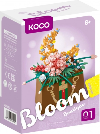 Entdecke die Magie des kreativen Bauens mit dem Mini-Bauset KOCO. Aus 245 hochwertigen Kunststoffteilen erschaffst du eine originelle Blume, versteckt in einer eleganten Handtasche, die ein Regal oder den Schreibtisch schmückt oder als Geschenk Freude bereitet. Dank des durchdachten Designs macht der Aufbau Spaß und das Ergebnis ist stabil und dekorativ.