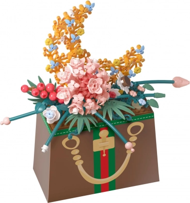 Kreatives Mini-Bauset KOCO: Blume in Handtasche mit 245 Teilen. Stilvolle Deko und tolles Geschenk für Kinder ab 6 Jahren. Kompakte Verpackung 11×15×6 cm.