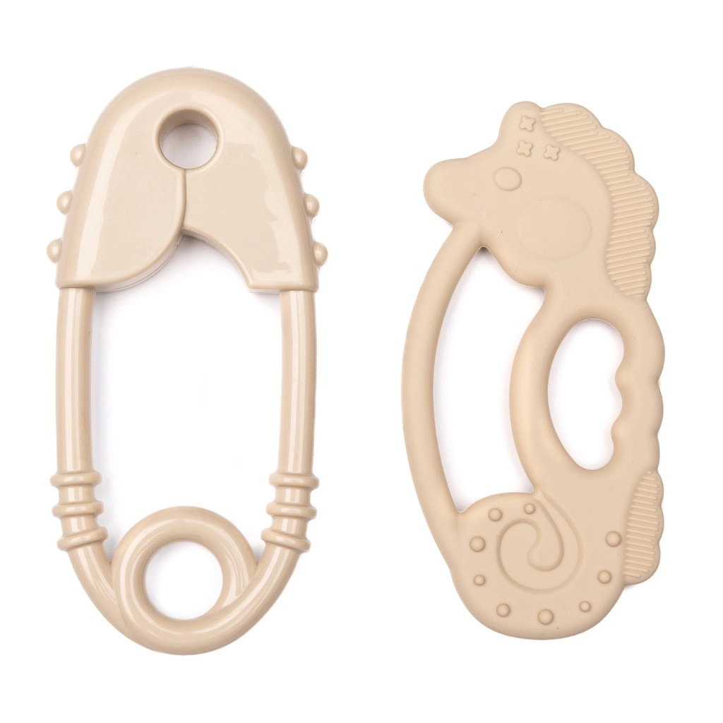 Dieses Set kombiniert einen niedlichen Silikon-Beißring in Seepferdchenform mit einer sicheren Stecknadel/Clip, der den Beißring stets griffbereit hält. Weiches, lebensmittelechtes Silikon massiert sanft das Zahnfleisch und hilft, das Unwohlsein beim Zahnen zu lindern.