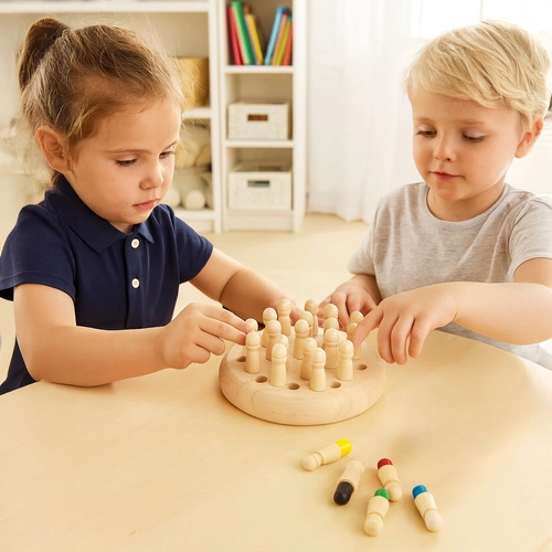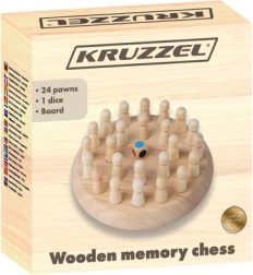 Das Holz-Memory-Schach KRUZZEL ist eine clevere Variante des klassischen Brettspiels. Ziel ist es, anhand des Würfelwurfs die richtigen Figuren zu finden und sich deren Position zu merken. So stärken die Spieler Gedächtnis, logisches Denken und Konzentration. Dank der stabilen Holzverarbeitung ist das Spiel langlebig und angenehm in der Haptik.