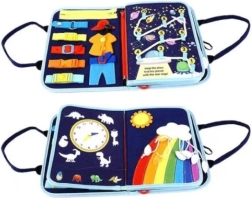 Innen finden Sie Aktivitäten wie Knöpfe, Schnallen, Reißverschlüsse, Klettverschlüsse und Schnürsenkel, die beim Erlernen praktischer Fähigkeiten und der Selbstversorgung helfen. Dank der weichen Ausführung ist das Buch sicher, leicht und auch für Reisen geeignet.