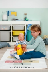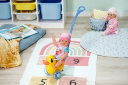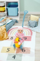 Der Schiebewagen Berta ist das ideale Accessoire für kleine Fürsorgerinnen und Fürsorger. Dank der abnehmbaren und verstellbaren Schiebestange lässt er sich leicht an die Körpergröße des Kindes anpassen und bietet komfortable Führung beim Fahren. Die verstellbare Rückenlehne und der Sicherheitsbügel sorgen dafür, dass jede BABY BORN Puppe bequem Platz findet.