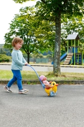 Die transparenten Rasselräder mit Perlen verleihen der Fahrt einen unterhaltsamen Soundeffekt und fördern die Sinneswahrnehmung. Unter dem Sitz verbirgt sich ein geheimes Fach für kleine Utensilien, das jeden Spaziergang noch abenteuerlicher macht. Die hochwertige Verarbeitung garantiert langanhaltenden Spielspaß voller Fantasie.