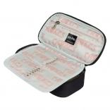 Im Inneren finden Sie eine doppelte Klappflappe mit Gummischlaufen für Stifte, eine praktische innere Reißverschlusstasche für Kleinteile und ein Fenster für den Stundenplan. Zuverlässige YKK-Reißverschlüsse und ein robuster, recycelter Stoff gewährleisten eine lange Lebensdauer auch bei häufiger Nutzung.