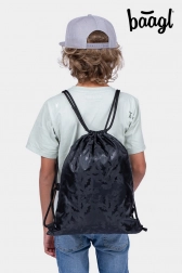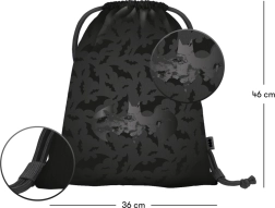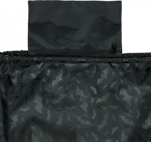 Leichter und praktischer Beutel von Baagl mit Batman-Motiv in elegantem Schwarz, ideal für Hausschuhe, Sportausrüstung oder Kleinigkeiten. Hergestellt aus strapazierfähigem, abwaschbarem Material und dank Zuziehen mit robusten Kordeln auch bequem auf dem Rücken tragbar.