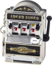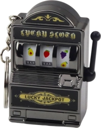 Genieße ein Stück Casino-Spaß jederzeit und überall. Der Mini-Slot-Automat als Schlüsselanhänger ist praktisch und verspielt – befestige ihn an Schlüsselbund, Rucksack oder Tasche und bringe die Walzen im Handumdrehen mit dem funktionalen, beweglichen Hebel zum Drehen. Dank der kleinen Abmessungen passt er in jede Tasche und eignet sich hervorragend als kleines Geschenk.