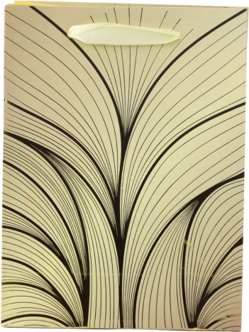 Elegante Geschenktasche mit wellenförmigem goldenen Muster, ideal für jeden Anlass – Geburtstage, Hochzeiten und Jubiläen. Hergestellt aus hochwertigem Zierkarton mit starken Kordelgriffen für bequemes Tragen. Modernes und luxuriöses Erscheinungsbild veredelt jedes Geschenk.