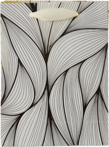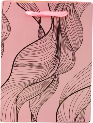 Diese Geschenktasche überzeugt durch ihr modernes Design und luxuriöse goldene Linien, die auf dem farbigen Hintergrund einen sanften Wellen-Effekt erzeugen. Dank der stabilen Verarbeitung eignet sie sich auch für schwerere Geschenke und ihre Maße passen perfekt für mittelgroße Gegenstände.